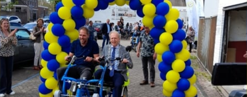Het is Fietsmaatjes Wassenaar gelukt om binnen een jaar goed op weg te gaan. De aanschaf van een tweede duofiets was op een zonnige vrijdag in april reden voor een feestelijke doop door burgemeester Leendert de Lange. Hij greep die gelegenheid aan voor een korte rit door het centrum met avonturier en duuratleet Mark Slats.